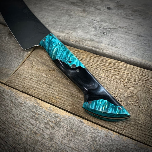 Japanese Santoku - Live Edge Maple Handle - Hand Forged Damascus Steel