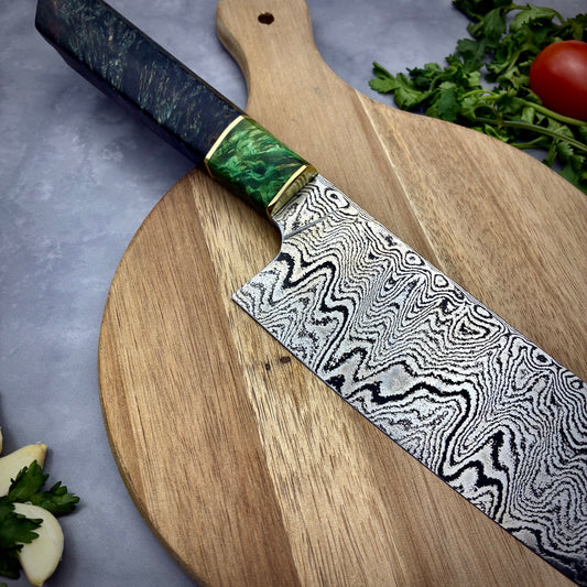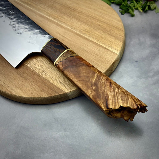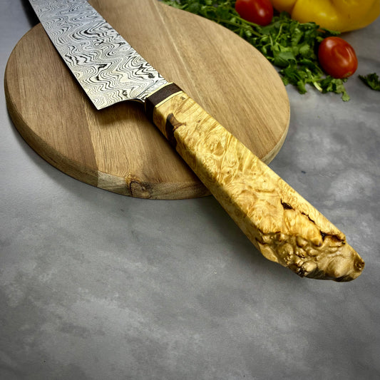 Damascus Japanese Kiritsuke - Live Edge Maple Burl Handle