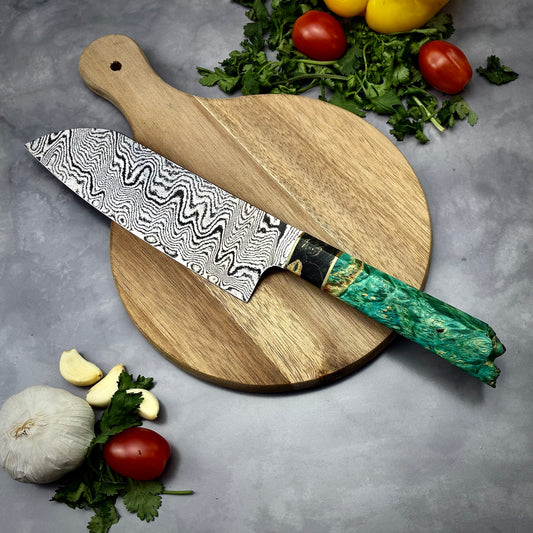 Japanese Santoku - Green Maple Handle - Forged AEB-L Stainless