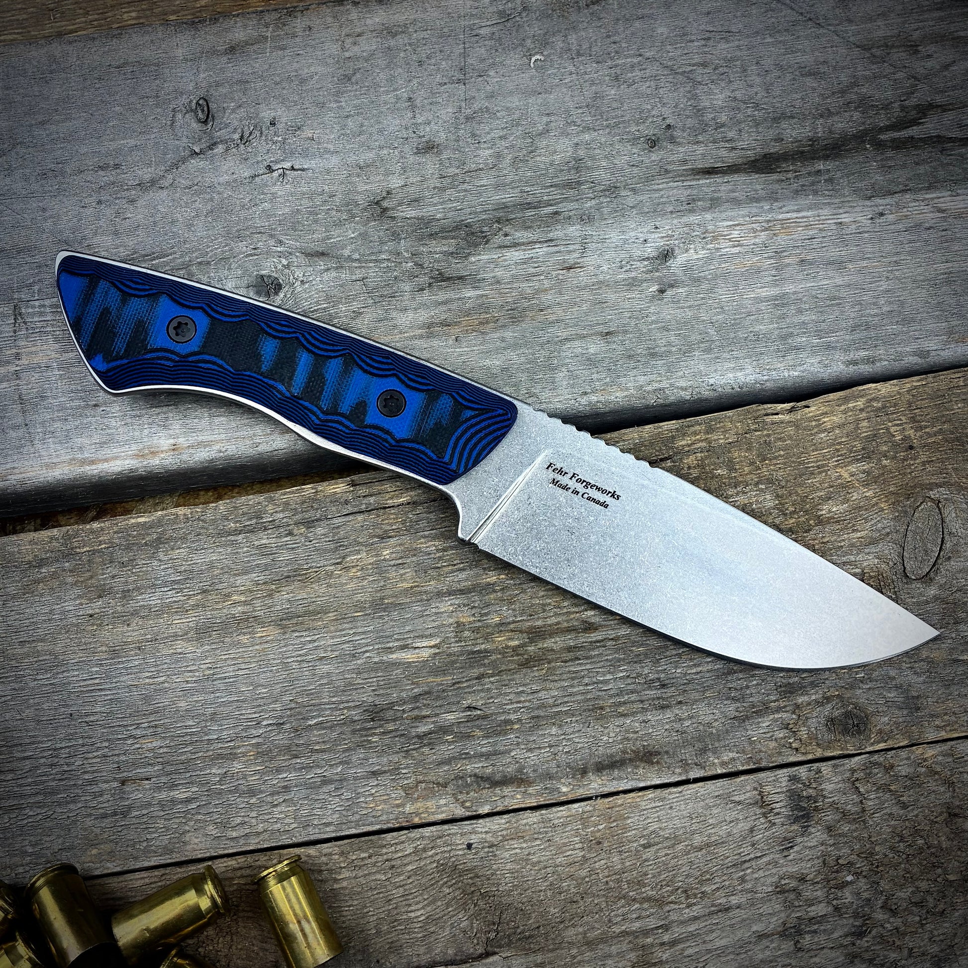 Since we've started making the Auxiliary it has become the most popular hunting and skinning knife that we offer at Fehr Forgeworks. Due to the comfortable handle and blade design it works well for skinning, as well as a great all around camping and utility knife. Based on customer feedback we've implemented a few updates with the Auxiliary V3 to make it even more functional.