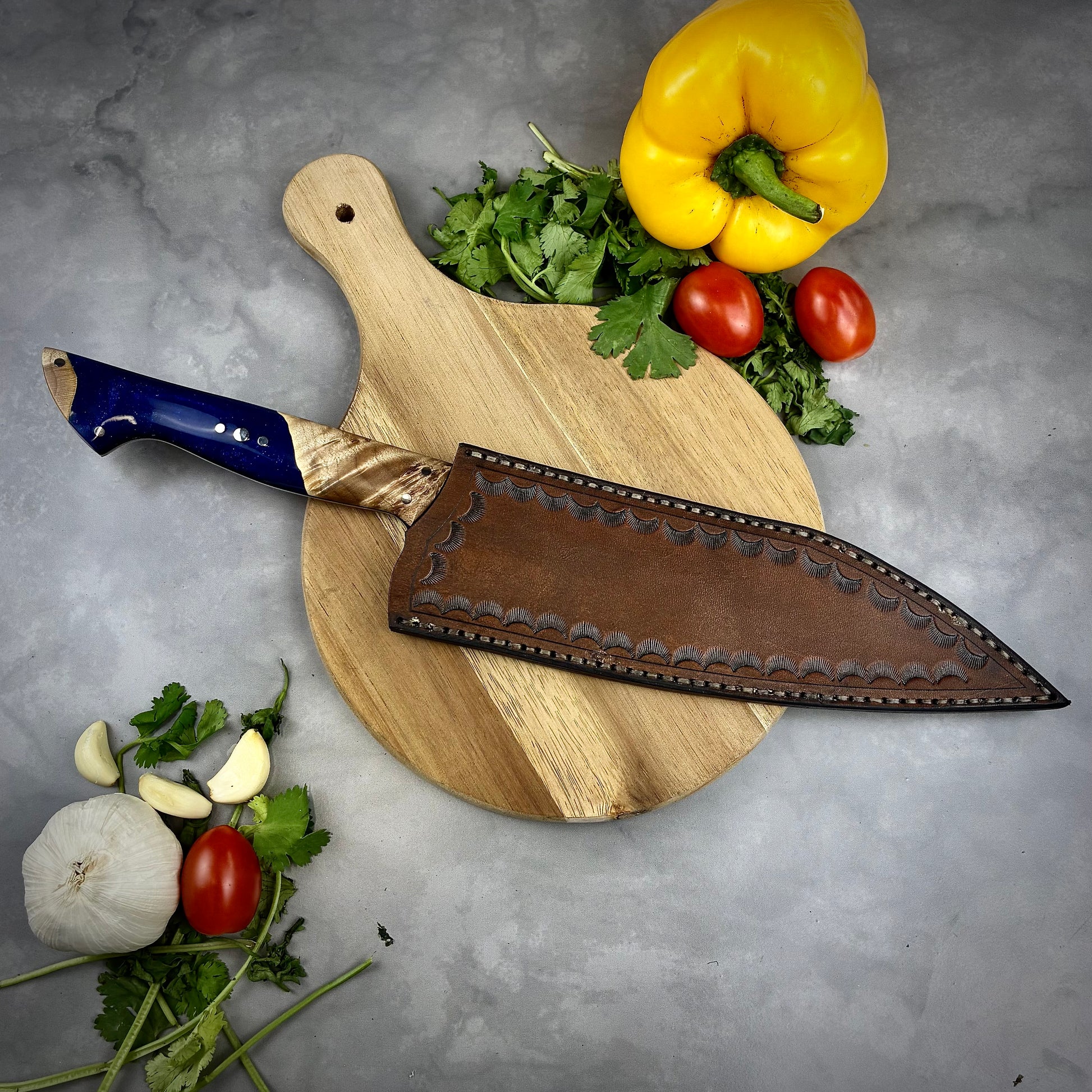 Our hand stitched and tooled leather sheaths will keep your blades safe and secure for storage in a knife drawer. Currently we offer brown and black leather sheaths for each blade. This sheath fits the Japanese Bunka - with the full tang handle construction. Please ensure that this is the correct blade you need a sheath for, if you have questions don't hesitate to send us an email and we can confirm which blade you have.