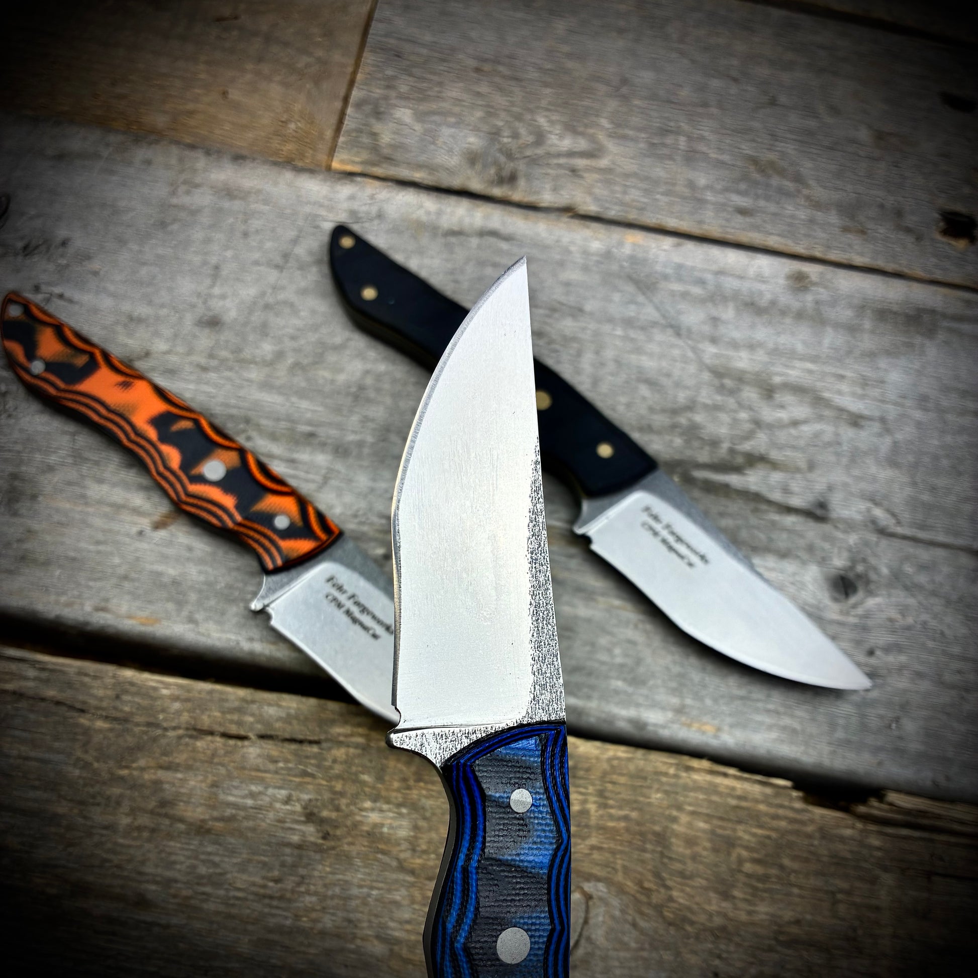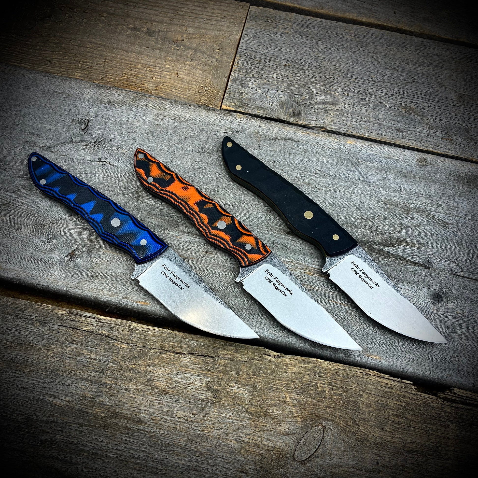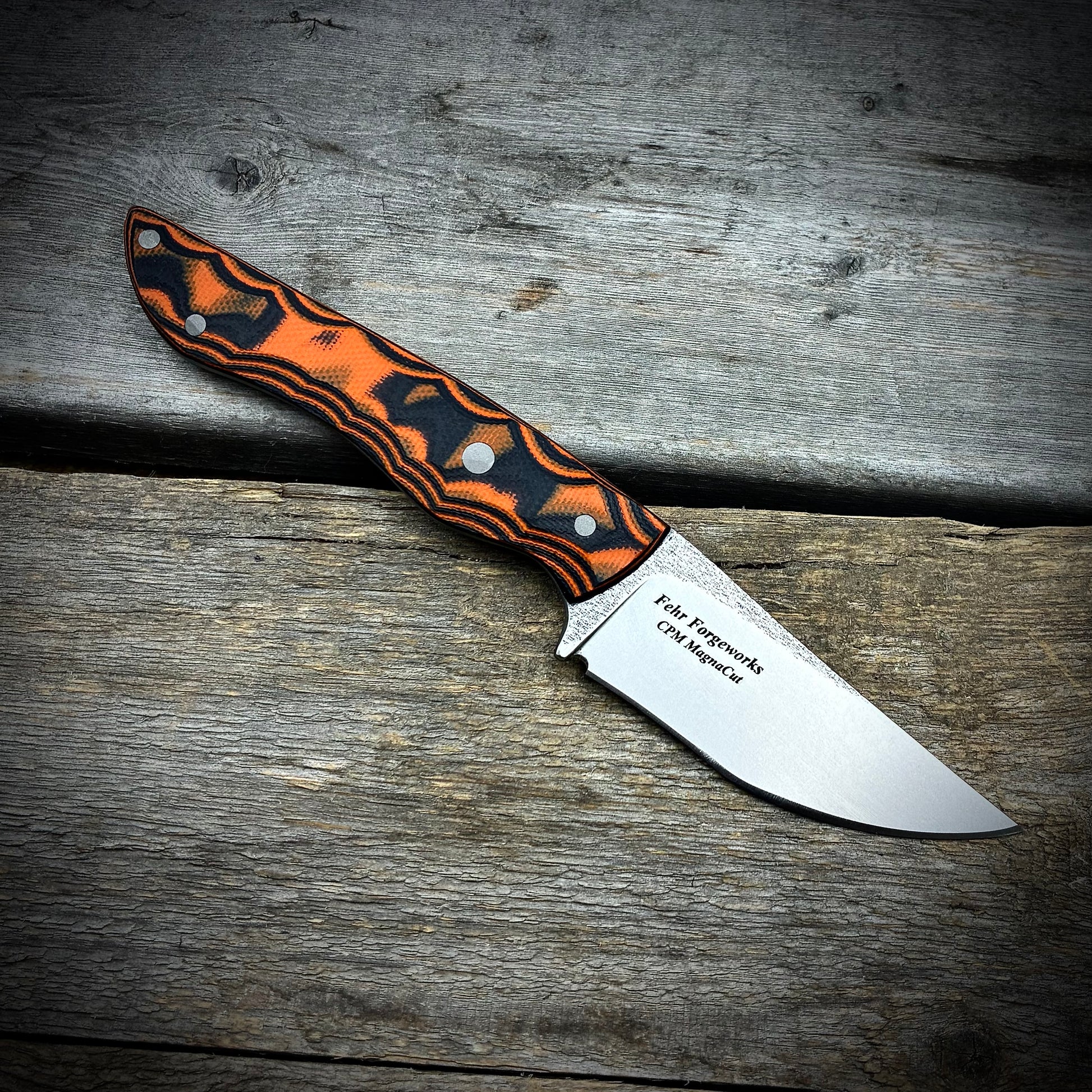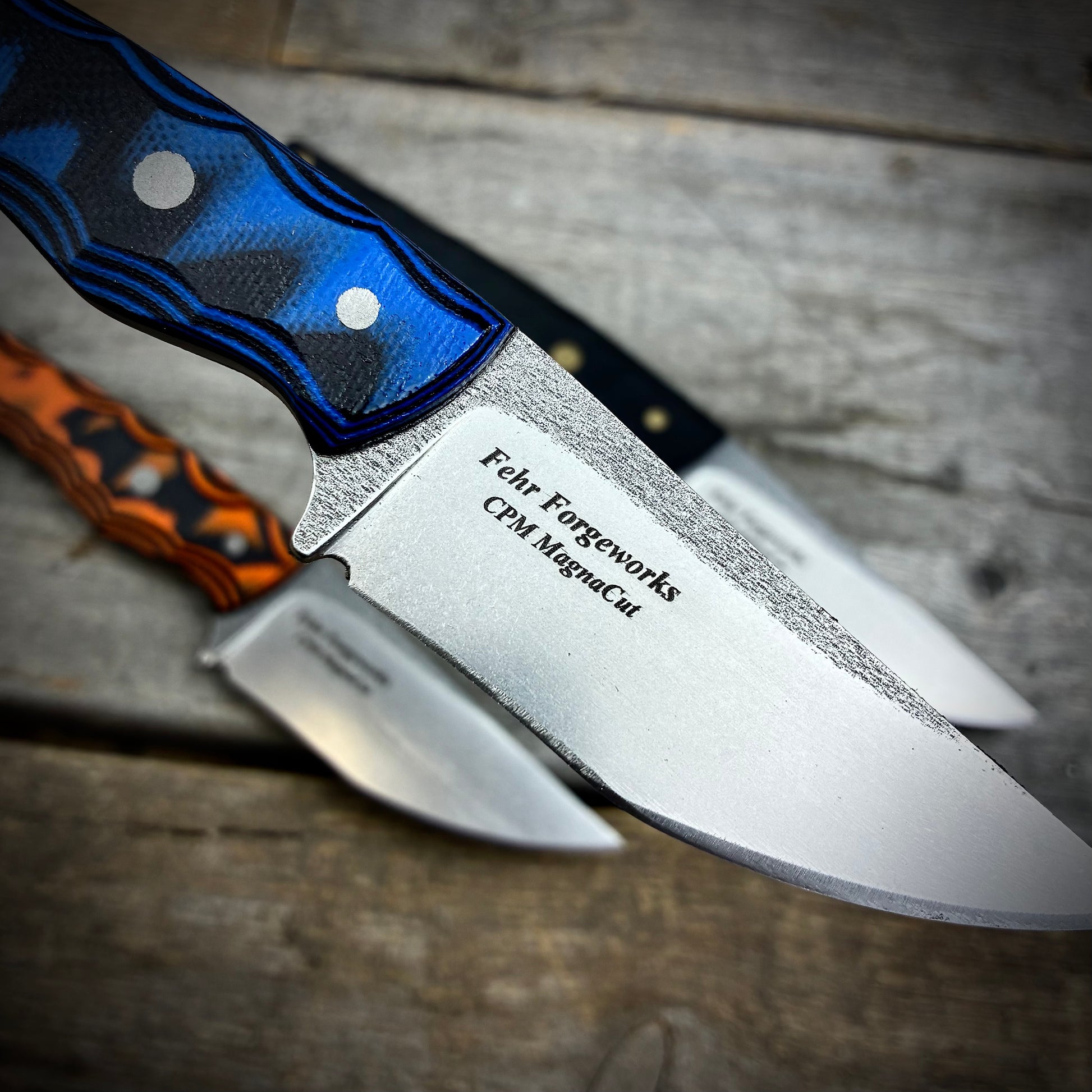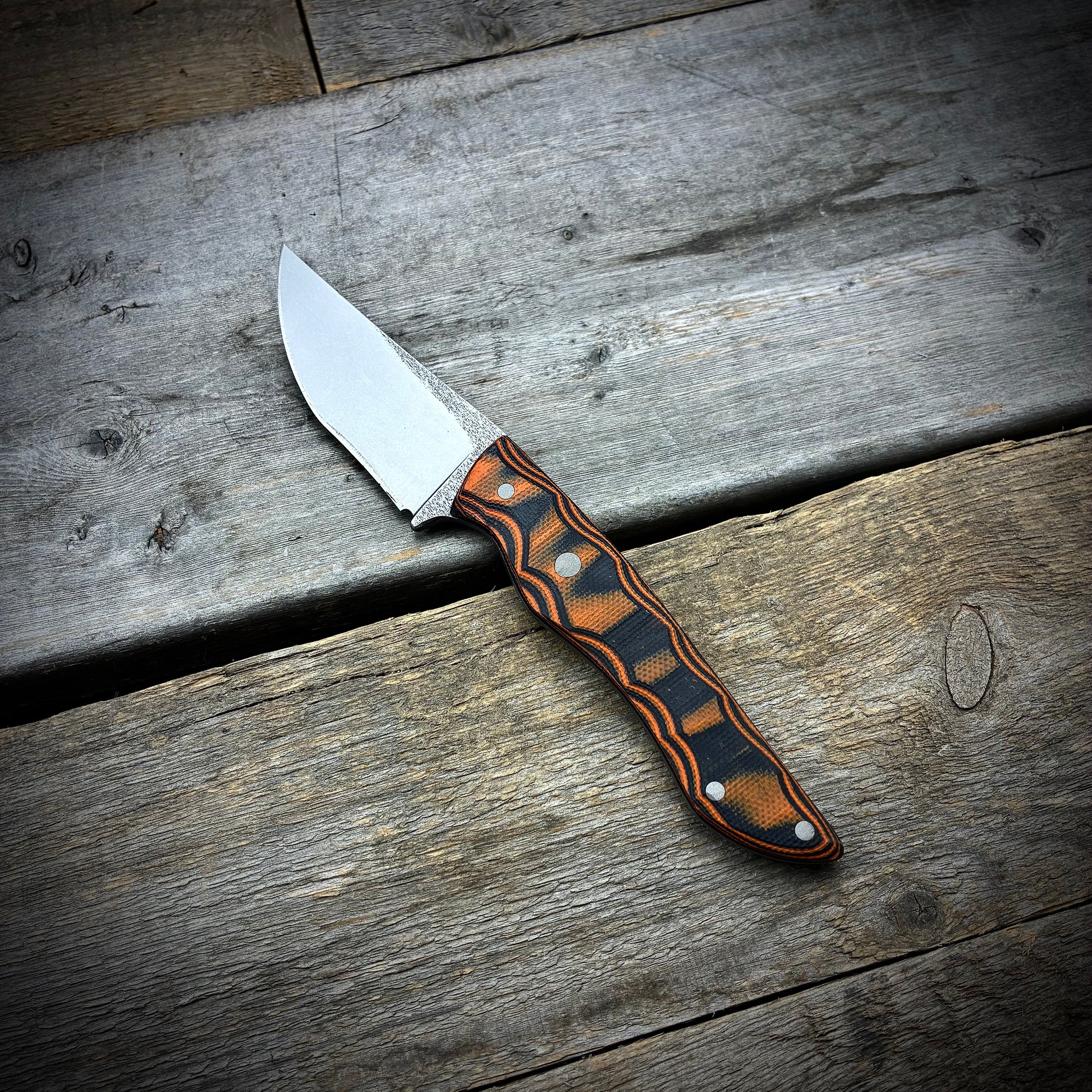 Introducing the EDC V2, in CPM Magnacut Steel! I've taken feedback from users of the EDC knife to create my updated, EDC V2. Furthermore, I've done a limited batch of these blades in CPM Magnacut, a premium stainless steel with unmatched durability and edge retention. I've polished the blade with a tumbled finish, and left the raw mill scale along the flats of the blade to create a unique look and leave a bit of texture. This knife is built for every day carry as a pocket knife, but also has been designed as a skinning knife for those who like a smaller knife for field dressing.