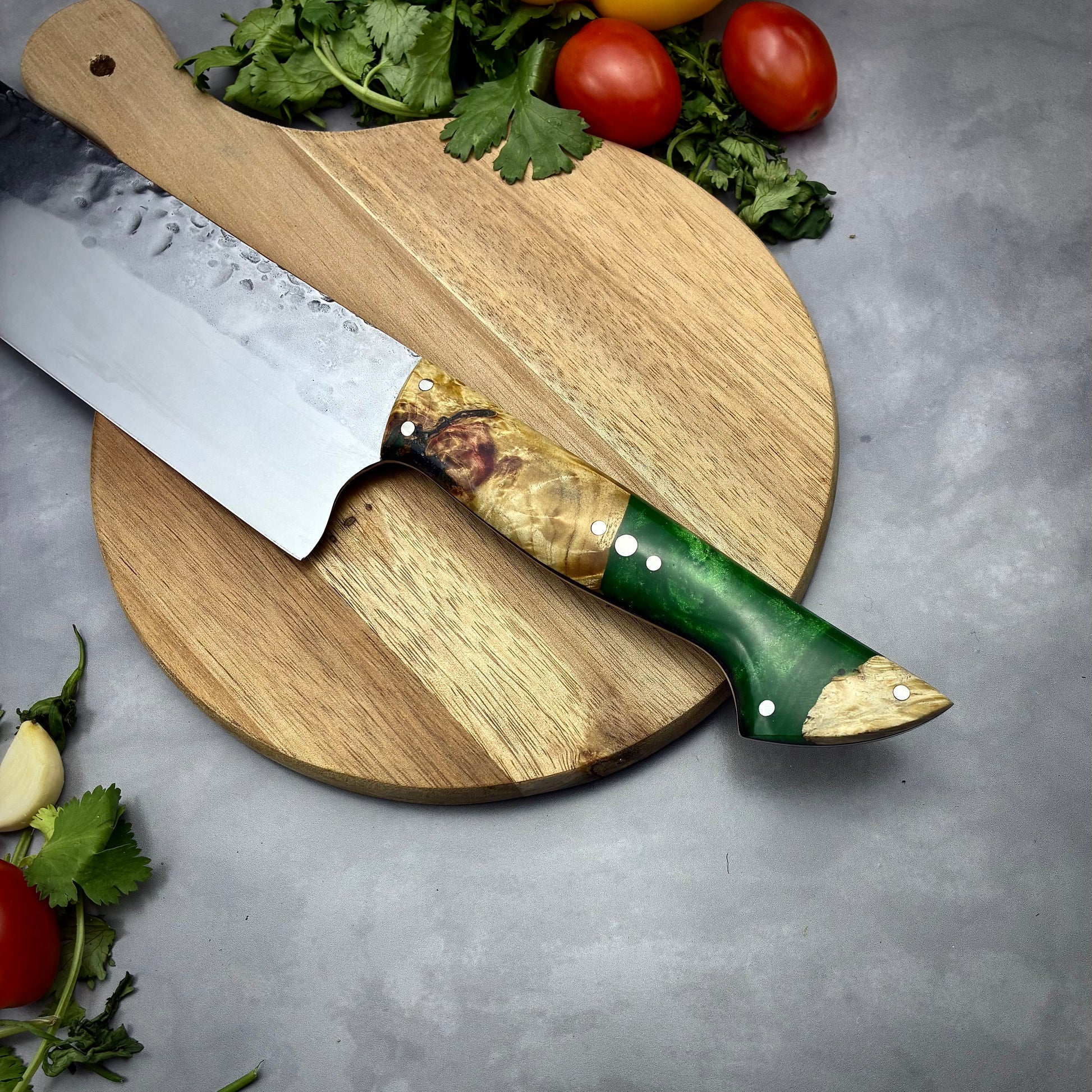 The AEBL High Carbon Stainless steel is perfect for durability and those that want a high quality and low maintenance blade. Hardened to 63 HRC, it'll hold up well for durable use on any wood or plastic cutting board.