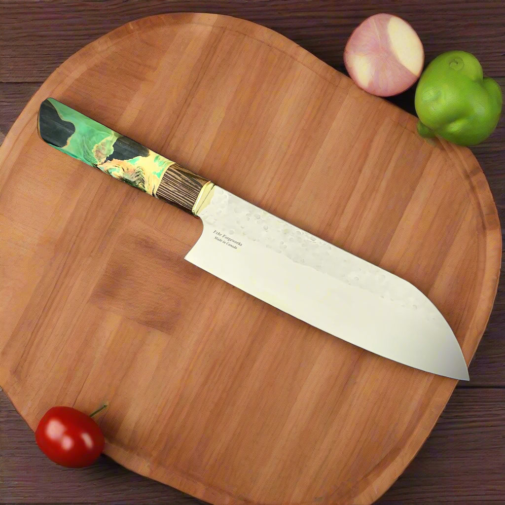 Japanese Santoku - Green Maple Handle - Forged AEB-L Stainless